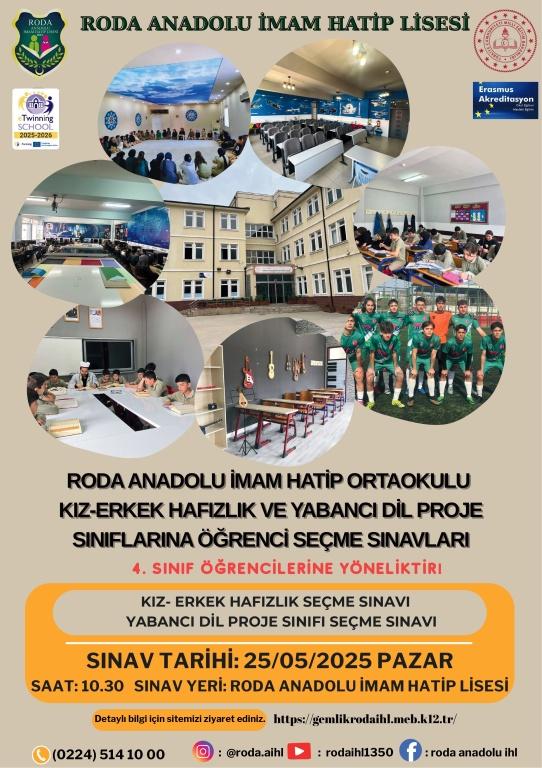 RODA ANADOLU İMAM HATİP ORTAOKULU VE LİSESİ KIZ - ERKEK HAFIZLIK ve YABANCI DİL PROJE SINIFINA ÖĞRENCİ SEÇME SINAVI